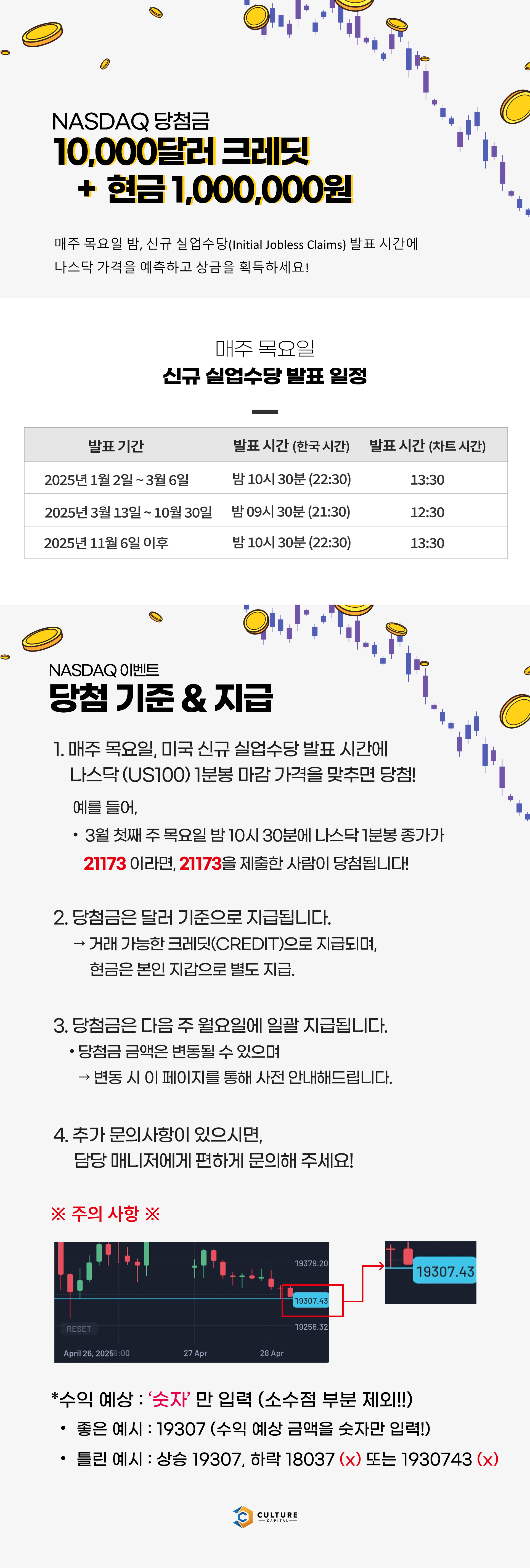 ✔ MT5, MTR 종가가 다를 수 있으며, 당첨은 30 lot 거래량 기준에 따릅니다.